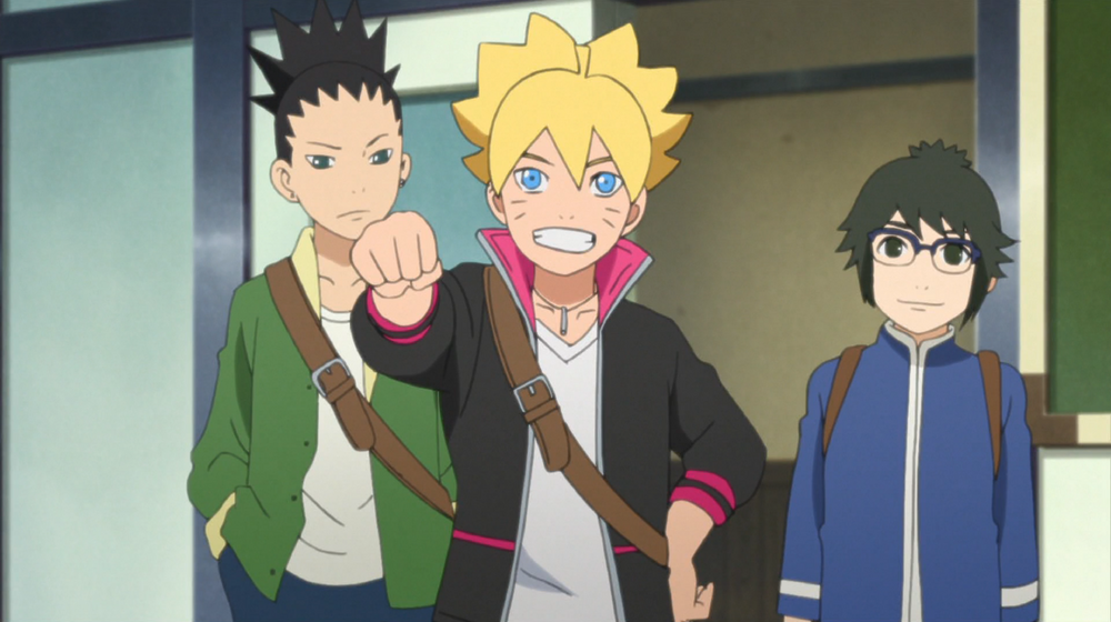 After being suspended for the uproar he caused at the entrance ceremony, Boruto makes his way to the academy for the first time. His classmates ostracize him for being the son of the Seventh Hokage and for being suspended. Iwabe Yuino, one of Boruto's classmates, picks a fight with him. Iwabe is an older student who has a keen sense for battle, but was held back a year for his bad behavior. At first, Boruto ignores him no matter what he says. But when he sees Iwabe punch Denki for telling him to stop, Boruto can't ignore him any longer.